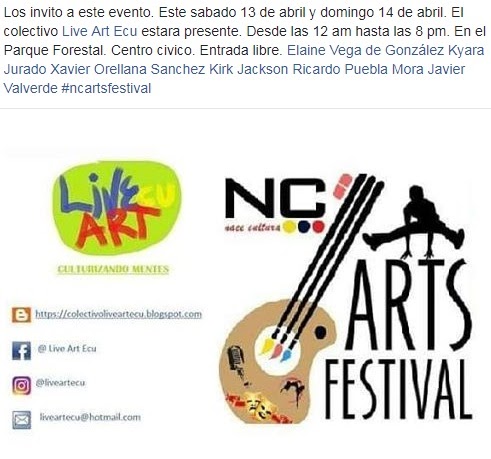 Participamos en la Feria Arts Festival de NC Cultura Abril 2019 como integrante del Colectivo Live Art Ecu ..